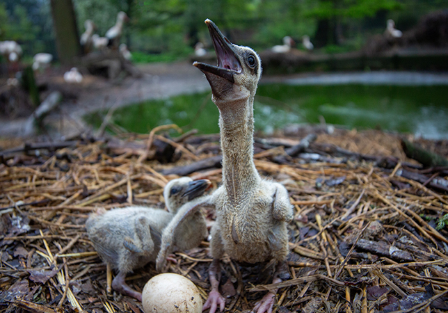 Careful observation is essential to ensure all birds complete their nests to the husbandry team’s satisfaction. Egg laying is also monitored. Jamie said: “After approximately 35 days, the chicks will hatch and the keepers then assume the role of “fairy godmother” to the chicks and the adults. Although the adults will bring a good supply of food to the nest for the young, the keepers also assist feed – visiting each nest daily with quantities of finely chopped feed items, usually fish and insects, to ensure that each chick’s chance of survival is optimised, and the workload of the parents with large clutches is not too exhausting. The young birds grow rapidly and by around two months of age, the birds will fledge the nest and become independent”.